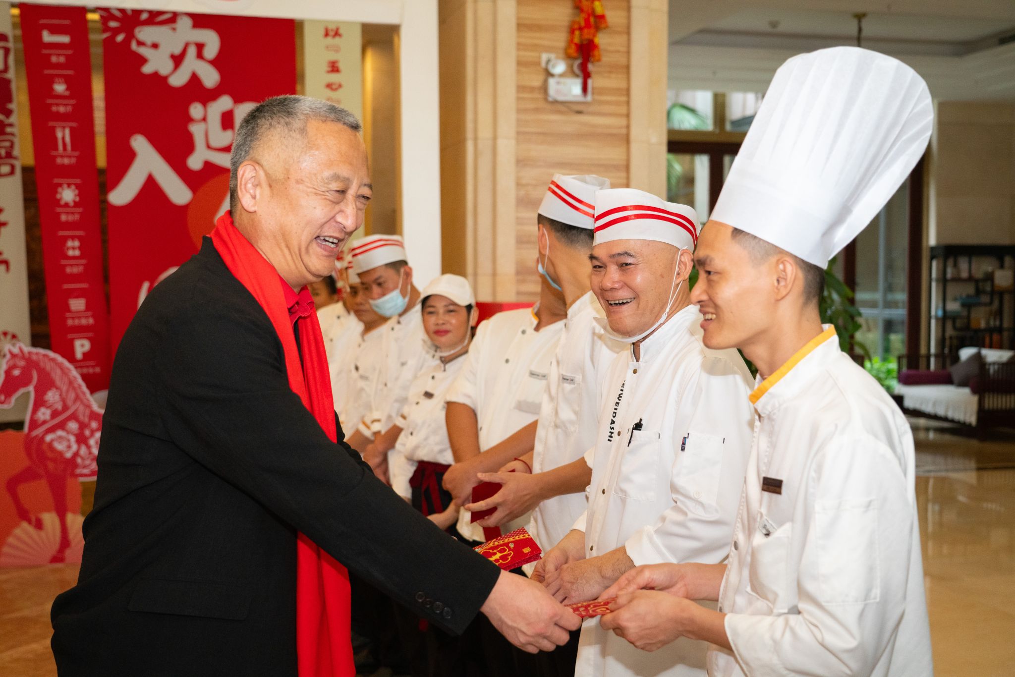 马蹄踏春辞旧岁,椰风送暖贺新春。2月17日,农历大年初一,海南大学校党委书记李湖带队来到国际学术交流中心,亲切看望慰问春节期间坚守岗位的一线员工,代表学校党委向大家及家属致以最诚挚的新春祝福和崇高敬意。学校党政办、总务后勤处(后勤保障部)等部门负责人,泰和顺公司董事长兼总经理李婉萍、副总经理李进登陪同慰问。